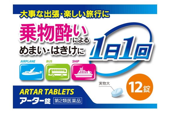 アーター錠は1日1回服用し、車の揺れや加速による神経的な興奮を軽減し、乗り物酔いによるめまい、吐き気、頭痛の発生を軽減します。 車、船、飛行機などに乗る約30分前に服用すると、不快な乗り物酔いから解放され、旅行や趣味がもっと楽しくなります。