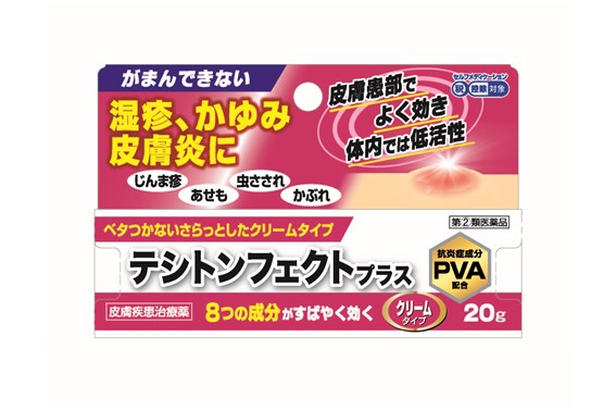 「テシトンフェクトプラスクリーム」は、アンテドラッグステロイドを配合したお薬で、8成分が虫さされのしつこいかゆみや湿疹、かぶれなどに対してしっかりと効きます。